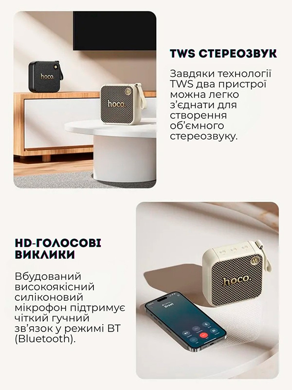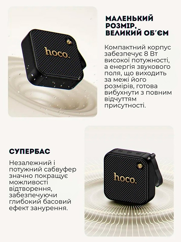 HOCO — це практичний і стильний аксесуар для поціновувачів якісного звуку та естетики. Колонка стане чудовим подарунком для друзів, близьких або для себе.