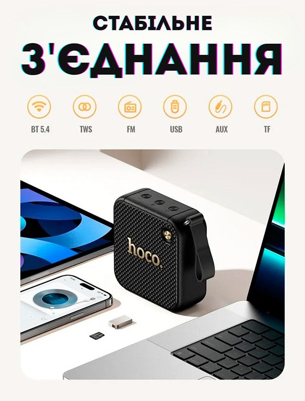 HOCO — це практичний і стильний аксесуар для поціновувачів якісного звуку та естетики. Колонка стане чудовим подарунком для друзів, близьких або для себе.